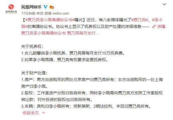 有时候是陪女儿玩耍的照片,有时候则是一段视频,记录着甜馨的日常,李小璐还表示,甜馨都是自己在照顾的,后来,有媒体曝光了两人离婚协议书,上面也清楚的表示孩子抚养权给女方,男方每个月支付女方十万元抚养费。