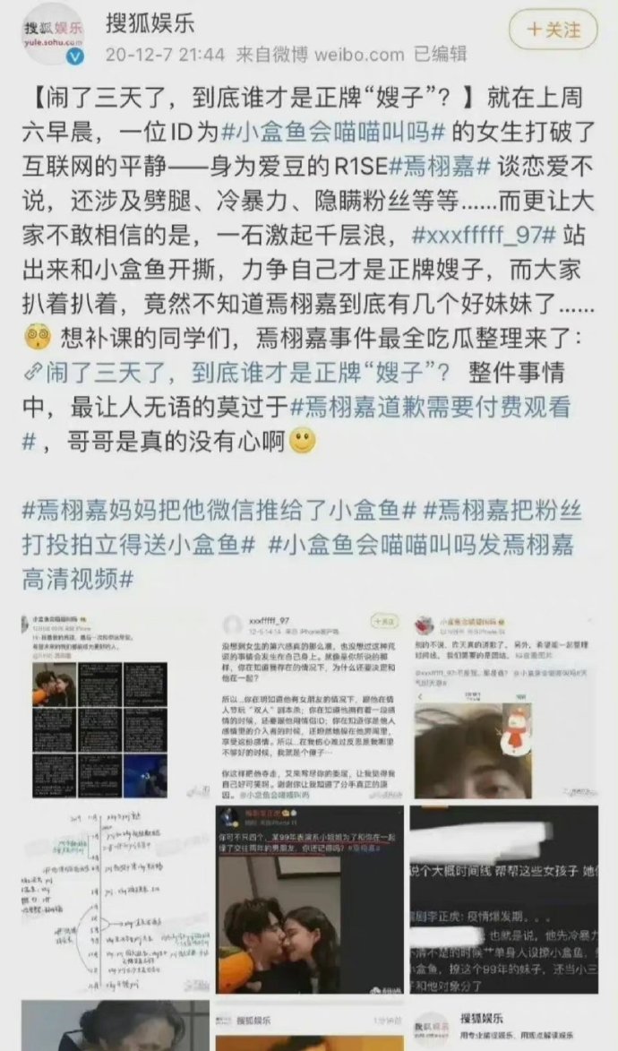 焉栩嘉因为被前女友爆料出轨、人品差、法律意识浅薄等一系列事件塌房了,一个叫“小盒鱼会喵喵叫吗”的网络用户爆料在与焉栩嘉交往的过程中,对方持续劈腿,女生表示焉栩嘉一边和别人谈恋爱,还一边在情人节和她玩剧本杀,一边拥有一段感情,一边还和她在游戏里使用情侣ID,脚踩两只船,哪个女生焉栩嘉都不想放过。
