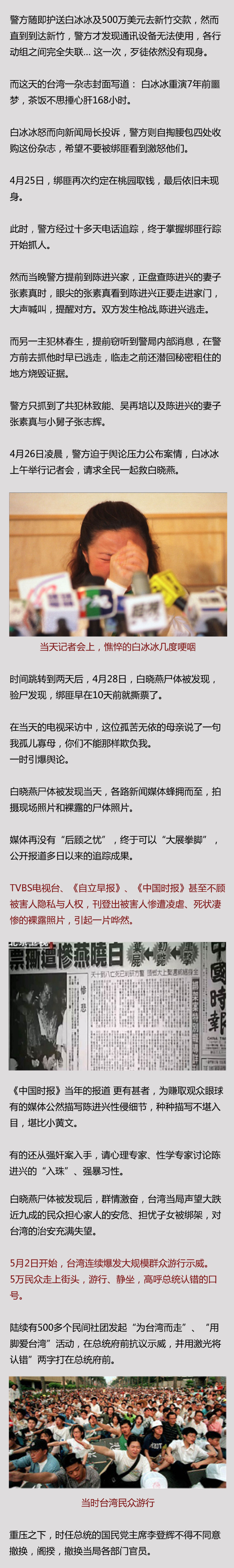 提起台湾女艺人白冰冰的女儿“白晓燕”命案,相信没有几个人不知道的。这个台湾有史以来最重大的刑案,如果当时的台湾媒体不过早介入大肆争相抢头条曝光跟踪案情,可能歹徒根本走不到丧心病狂的这一步。而究竟主犯陈进兴为什么对待一个未成年少女如此残忍?白晓燕最终是怎么被折磨致死的?随着小编一起来了解白晓燕求救信内容惨死吐舌照慎入以及陈进兴讲述白晓燕入珠变态细节。