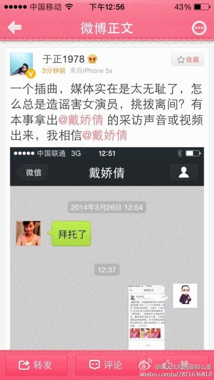 回应三:戴娇倩:我当时为于正救火