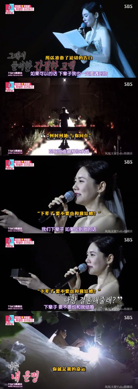 在婚礼上秋瓷炫深情的对于晓光:还记得我们第一次见面的时候吗?不知道要怎么表现出自己喜欢,一直都对我很好的你,回想起来,你不知道我有多感谢你。没有家人朋友,独自远在他乡,对于孤独地只能忙于工作的我,你是给予我力量的人。于晓光,感谢你来到我的身边,感谢你成为我的至亲,感谢你总是支持我,感谢你总是能让我不孤单、总是能逗我笑,要和你一起走下去的这一生,我觉得实在是短暂,如果可以的话,下辈子我也一定要遇到你。我现在准备向你求婚,下辈子要不要也和我结婚?