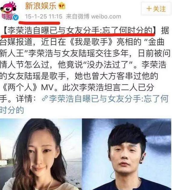 李荣浩为什么抛弃前女友陆瑶她真的好贱吗 这些歌都是为她而写的