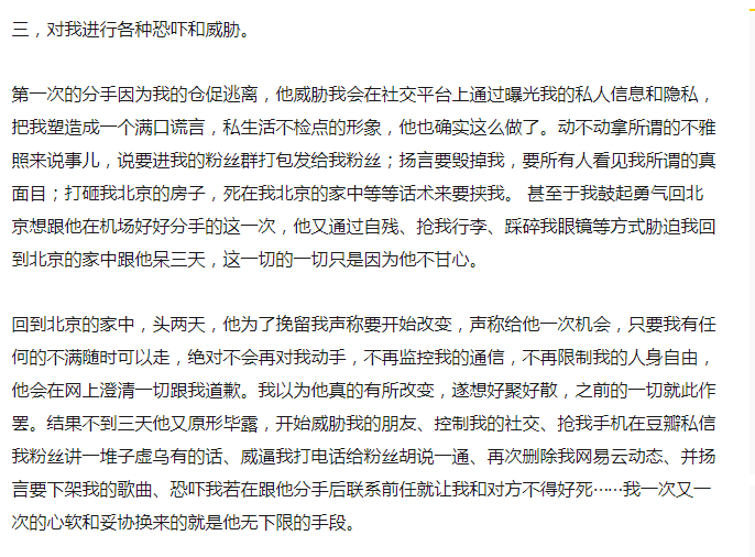 除了拳脚相信,张嫮目还时常言语暴力,骂女友是婊子烂货剩饭下等人等,每次骂完女友以后,还要女友回应他,不回应就用剪刀在她的头发上乱剪一通,甚至有时候还扒开女友的衣服拍照片。