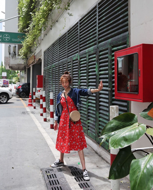 没有什么上衣外套比牛仔外套更百搭了吧,碎花裙的清新自然搭配牛仔外套的随性休闲,清新自然的的穿搭就是这样简单。