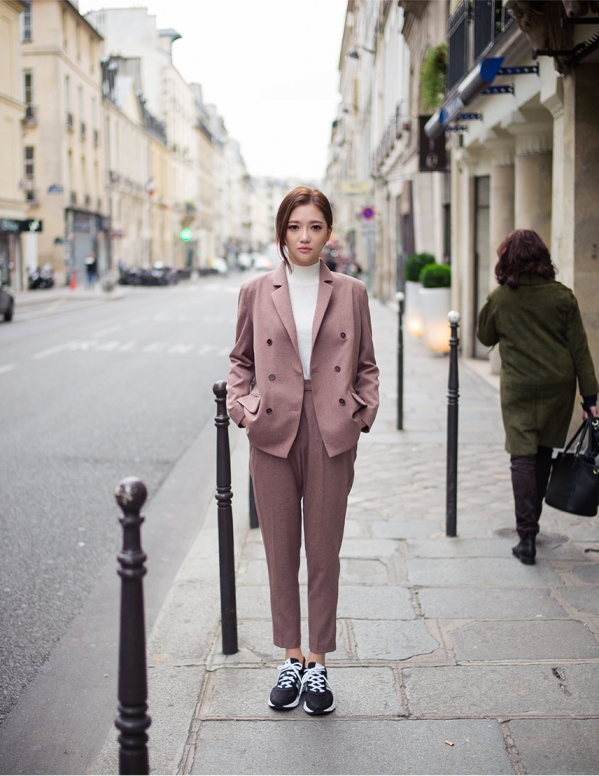 粉色西装外套怎么搭配图片内搭什么 粉色这样穿高级感取代稚气