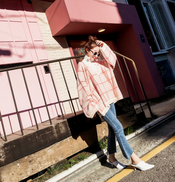 V领设计凸显颈部和胸前部位的线条感,深V领向来都是性感的代名词之一,而穿V领针织衫不一定要全部露出胸部以上的肌肤,V领针织衫内搭一件高领衫既随性又打造出叠穿的层级感,早出这样穿保暖又时髦。