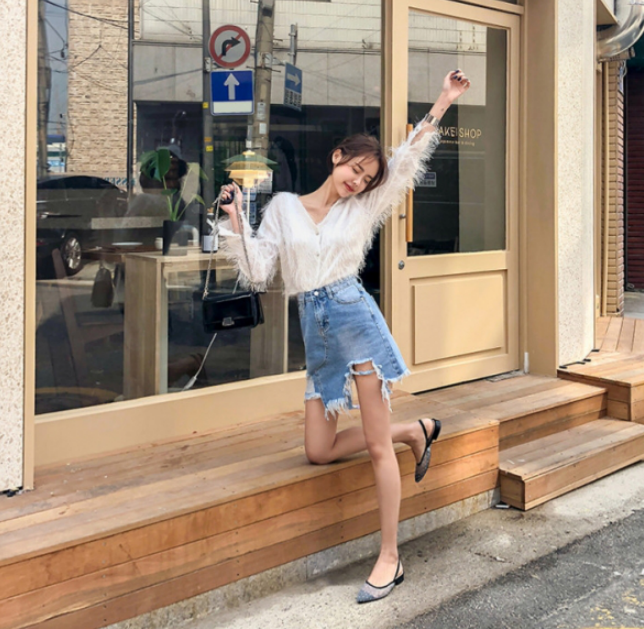美美的裙子当然是春天最不能少的搭配单品,牛仔小短裙很有春夏的感觉,穿搭起来比较清爽,充满青春活力。春季V领针织衫搭配牛仔短裙,甜美、减龄。