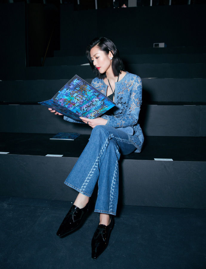 国际超模大表姐刘雯,带货能力也是杠杠的,镂空牛仔外套配长款牛仔阔腿裤,看起来特别的温柔知性。