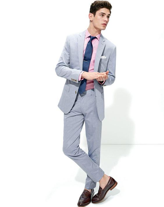 西装革履是每个商务男士的日常穿搭,一套西装内搭白色衬衫或者蓝色衬衫看起来都是充满正式感的,如果你觉得这样穿太严肃、单调,将内搭的衬衣换成粉色就会瞬间变得不一样,彰显出温柔气质,并且看起来更阳光。