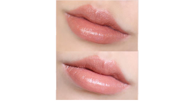 407是粉粉的豆沙色,可以说是玫瑰豆沙色,颜色非常日常,也很温柔,是比较显气质的一个颜色,对黄皮很友好,上嘴提气色又有点少女的感觉。