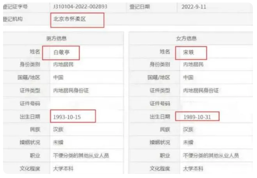 随着两人的恋情多次被证实,更有网友曝出其实白敬亭和宋轶已经结婚领证了,毕竟早在去年的双十一就被曝彼此已经见过家长了,相信肯定是好事将近了,网友称白敬亭和宋轶结婚很久了,朋友的妈妈是化妆师,接触到这一方面的消息,但是对此网友纷纷质疑,他们二人的才在一起半年,却说结婚很久了,很不切实际,对于网友的质疑,网友还晒出了两人的登记信息,虽然没有得到证实,但是就现如今宋轶和白敬亭的感情,相信好消息肯定会有的,也让我们祝福宋轶和白敬亭吧!